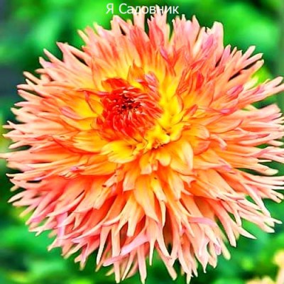 Георгина Снохо Вондер отличается изысканной окраской: в центре цветки имеют насыщенный оранжевый цвет, а по краям переходят в пастельно-лососевый.